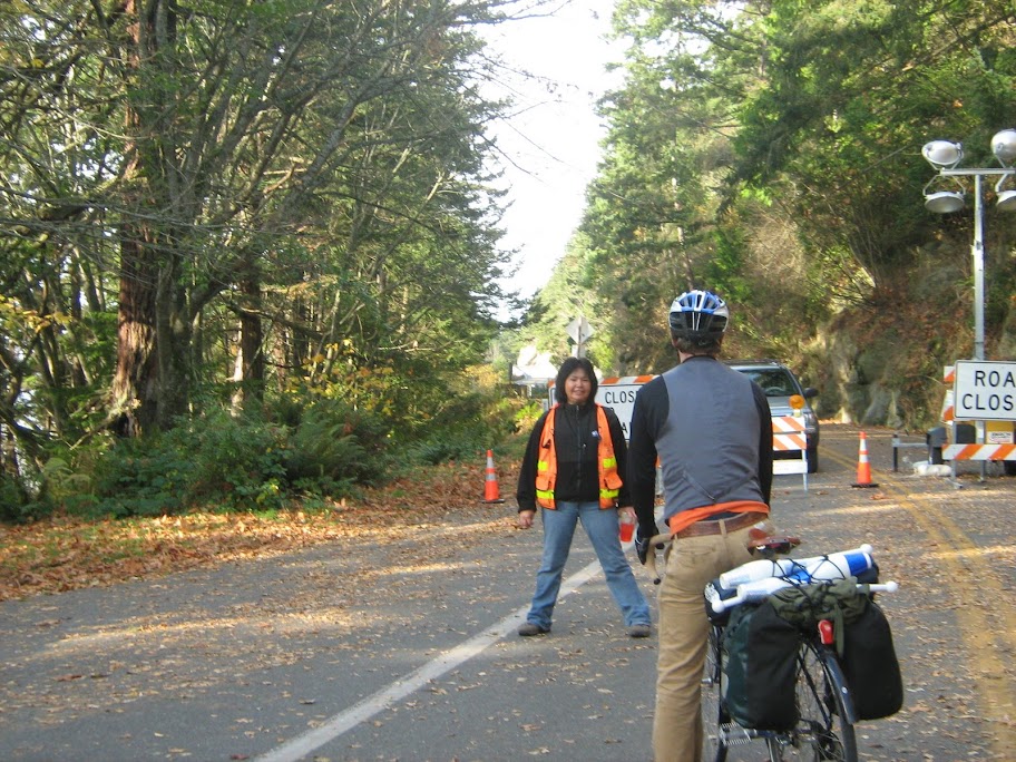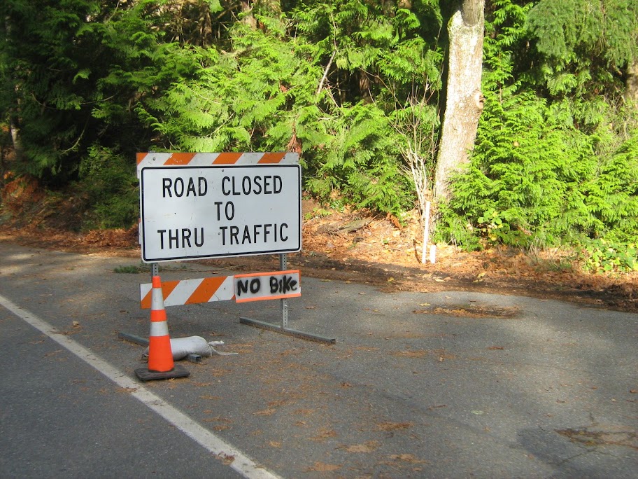 Yeah, you need more than knobbies, you need an invisibility cloak, because there is actually a wsdot guard posted at each end of the slide area 24-7 specifically to turn bikers away. Went for a ride with a bunch of friends last weekend, went out on samish to make sure we would get to the party on time, but tried coming back chuckanut to see the slides. When the nice lady said we couldn't go on (after about 10 road closed signs, including one that was spray painted by hand to say "NO BIKES") we doubled back, took a trail down to the beach/railroad tracks. and hiked a bit over a mile and a half along the tracks until we went up at Clayton beach.