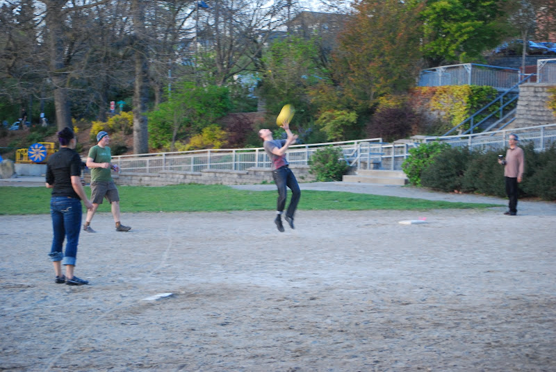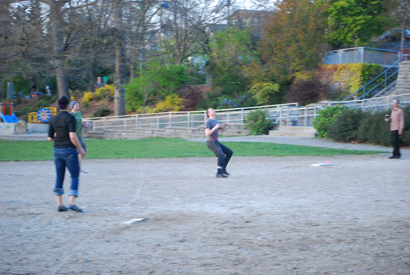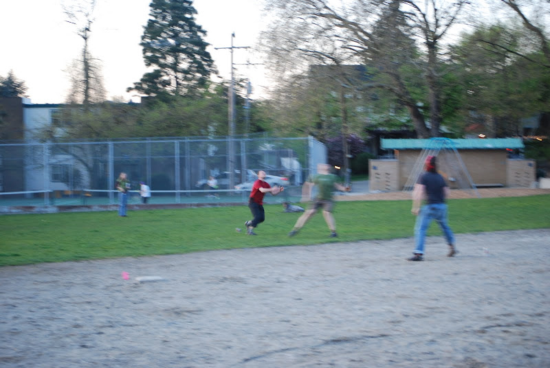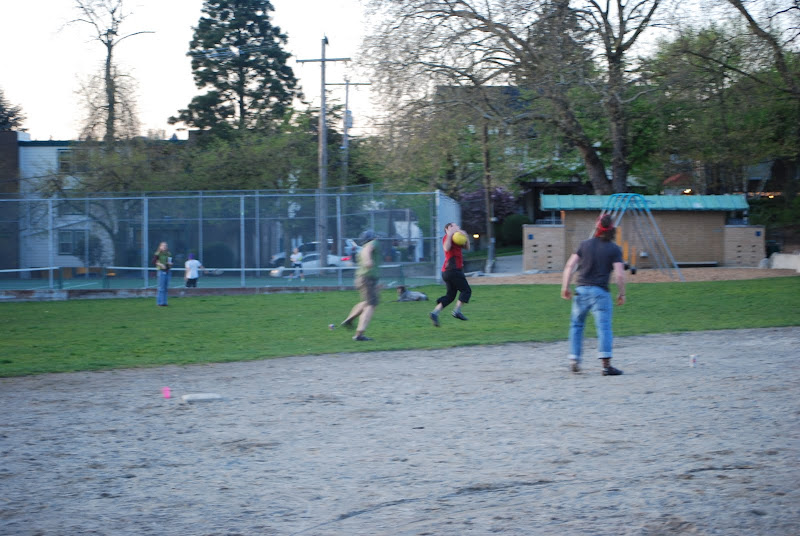 Hey, that's the kind of spring nights I like. Thanks for bringing the ball Ben, it felt like recess with twilight for a bell. Sully's was nice except they didn't have nachos. don't you ever lie to me Lee! I'm feeling a B-line to Carkeek soon.